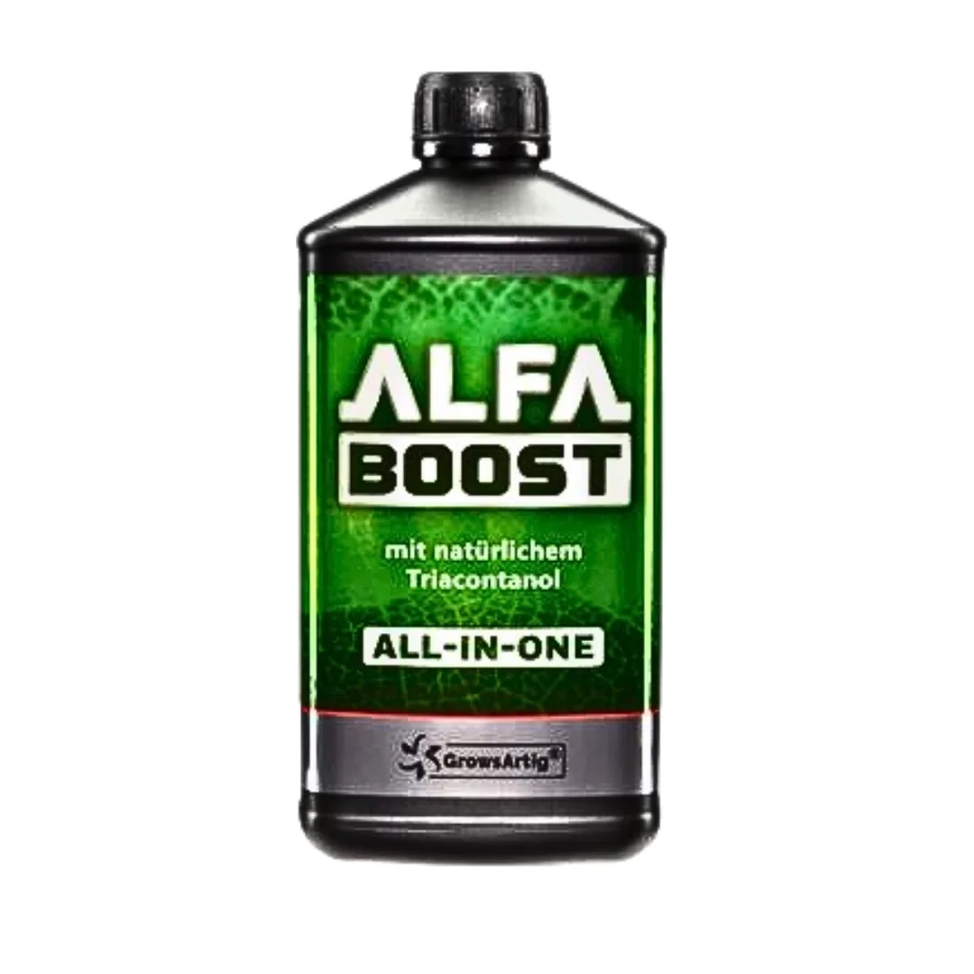 Alfa Boost ist ein natürliches Pflanzenhilfsmittel, das den Fruchtansatz sowie den Ernteertrag der Pflanze steigert. Durch Alfa Boost wird die Reifung beschleunigt, Wachstums- und Blütezeit hingegen verkürzen sich. Es kommt dadurch zu einer Steigerung des Ernteertrages insgesamt. Samen keimen schneller und Stecklinge bilden schneller Wurzeln aus. Die Pflanzen entwickeln schnell und zuverlässig ein gut ausgeprägtes Wurzelsystem, wodurch sie kräftiger und vitaler sind. Die Anfälligkeit für Krankheiten sinkt, da die Pflanzen von Grund auf resistenter sind.